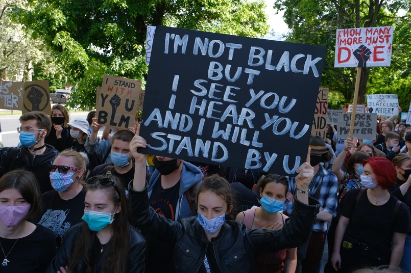 30-letni Piotr zaznaczył, że wziął udział w proteście, by wyrazić solidarność z protestującymi w USA oraz wyrazić sprzeciw na wobec złego traktowania obywateli przez amerykańskie władze i policję. Wpływ na sytuację w Stanach mamy minimalny, ale przynajmniej możemy się zsolidaryzować - tłumaczył. Jak dodał, olbrzymia dyskryminacja Afroamerykanów jest od kilkudziesięciu lat zamiatana pod dywan przez amerykańskich polityków. Nie podoba mi się to, co dzieję się w Stanach Zjednoczonych, jestem mi z tego powodu bardzo smutno - powiedziała 24-letnia Klara, uczestniczka protestu. Dużo ludzi cierpi. Jeśli ktoś jest sygnowany przez kolor skóry, częściej pada ofiarą zabójstwa z błahych powodów - dodała.