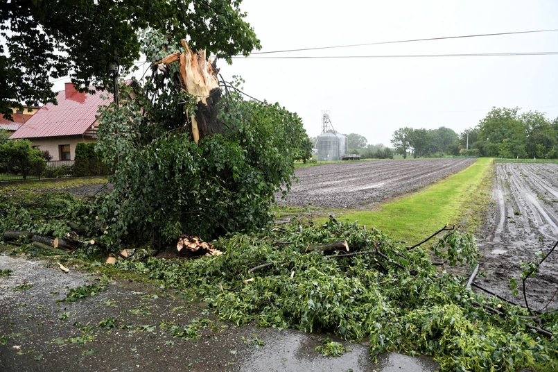W nocy zachmurzenie duże z większymi przejaśnieniami. Miejscami przelotne opady deszczu oraz burze, początkowo z gradem. Nad ranem miejscami mgły ograniczające widzialność do 300 m, lokalnie 200 m. Prognozowana suma opadów w czasie burz do 20 mm. Temperatura minimalna od 16 st. do 18 st., w miejscowościach podgórskich około 13 st. Wiatr słaby i umiarkowany, w czasie burz w porywach do 70 km/h, północno-wschodni.