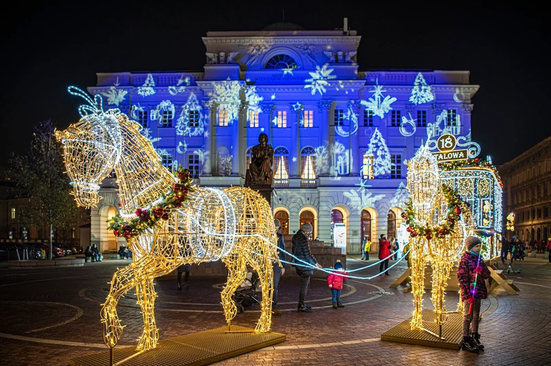 Główną osią świątecznego oświetlenia jest – krótszy niż zwykle - odcinek Traktu Królewskiego od ronda de Gaulle’a do placu Zamkowego. Fragment Traktu wyłączono w sobotę z ruchu kołowego, przemieniając ulicę w deptak.
