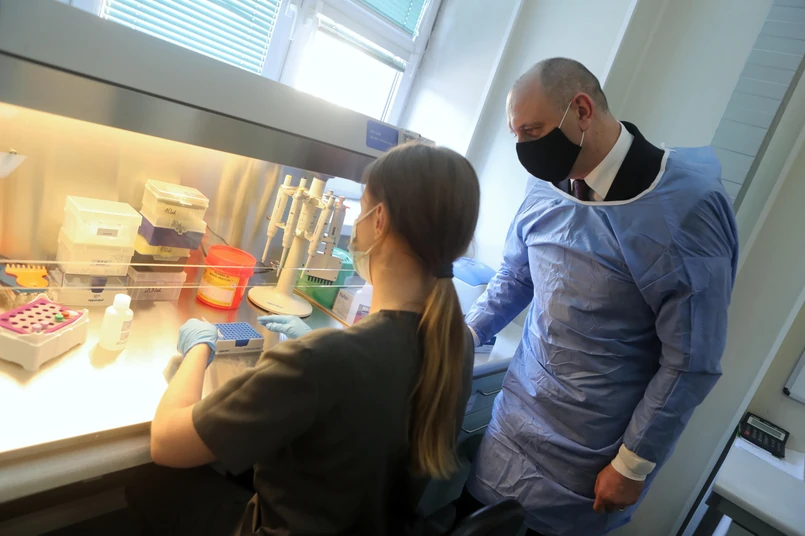 Główny Inspektor Sanitarny wizytował we wtorek laboratorium Wojewódzkiej Stacji Sanitarno-Epidemiologicznej w Łodzi, które jako jedno z czterech w Polsce sekwencjonuje genom wirusa SARS-CoV-2, czyli odczytuje informację genetyczną niezbędną przy oznaczaniu na przykład mutacji Delta.