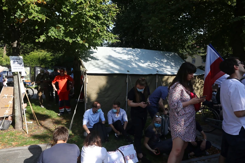 Szaraniec zapowiada, że „białe miasteczko” przed Kancelarią Premiera będzie funkcjonowało dopóki nie zostaną spełnione postulaty. - W tym momencie mamy 30 osób, które tam śpią, ale mamy informację, że kolejne osoby do nas dołączają. Dziś spodziewamy się pielęgniarek z Katowic i kolejnych pielęgniarek z Warszawy – mówi pomysłodawca protestu. Rotacyjny protest? - To pewien sposób na funkcjonowanie „białego miasteczka”, bo teraz noce są chłodniejsze i nie chcemy, żebyśmy się wszyscy pochorowali – komentuje Wojciech Szaraniec. Opowiada również, że wszyscy protestujący wzięli urlopy wypoczynkowe albo bezpłatne. Nastroje? - Po wczorajszym dniu jesteśmy bardzo pozytywnie zaskoczenie. Wielu warszawiaków przyniosło nam wodę, ciasta. Bardzo dużo ciepłych słów – mówi lekarz.