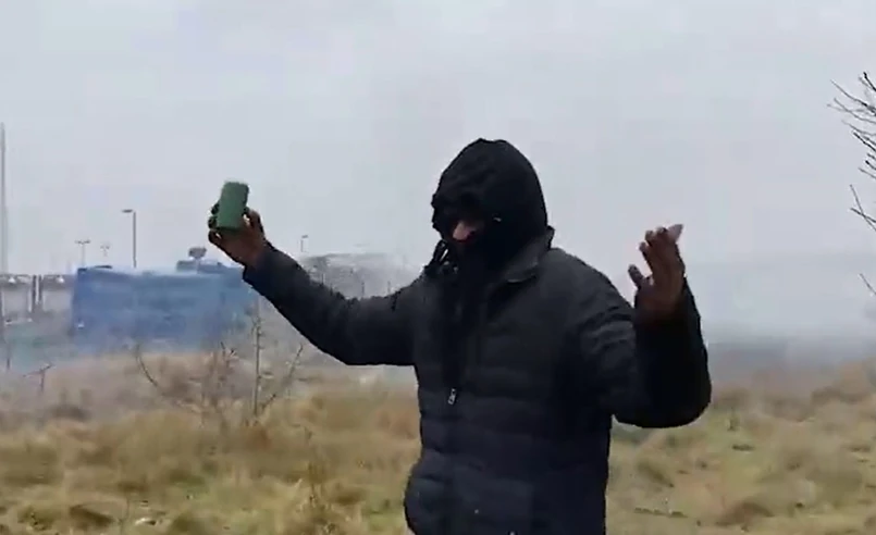 Na zdjęciach i nagraniach widać grupę młodych mężczyzn, którzy rzucają w stronę ogrodzenia i kordonu polskich funkcjonariuszy kamienie i gałęzie.