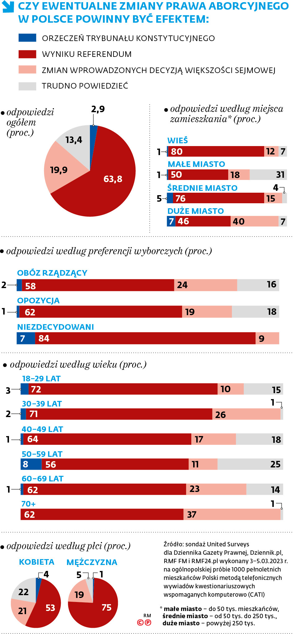 Ogółem wyniki badania United Surveys dla DGP i RMF FM wskazują, że Polacy chcieliby, aby o zmianach w prawie aborcyjnym zdecydowało całe społeczeństwo, w drodze referendum. A jak wygląda szczegółowy rozkład odpowiedzi?