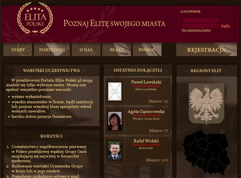 Porta reklamuje się jako prestiżowe miejsce dla "wąskiej Grupy Osób znajdującej się najwyżej w hierarchii społecznej". Użytkowników kusi unikalnym adresem e-mail: imie.nazwisko@elita-polski.pl, redagowaniem elitarnego bloga i możliwością zaprezentowania swojej osoby i osiągnięć milionom Polaków. Żeby zostać członkiem tej społecznościtrzeba jednak spełnić wysokie wymagania - jak piszą twórcy - do "Elity" wejdą tylko ci, którzy ukończyli studia wyższe. A więc były prezydent Aleksander Kwaśniewski, czy Lech Wałęsa nie mają tu wstępu.