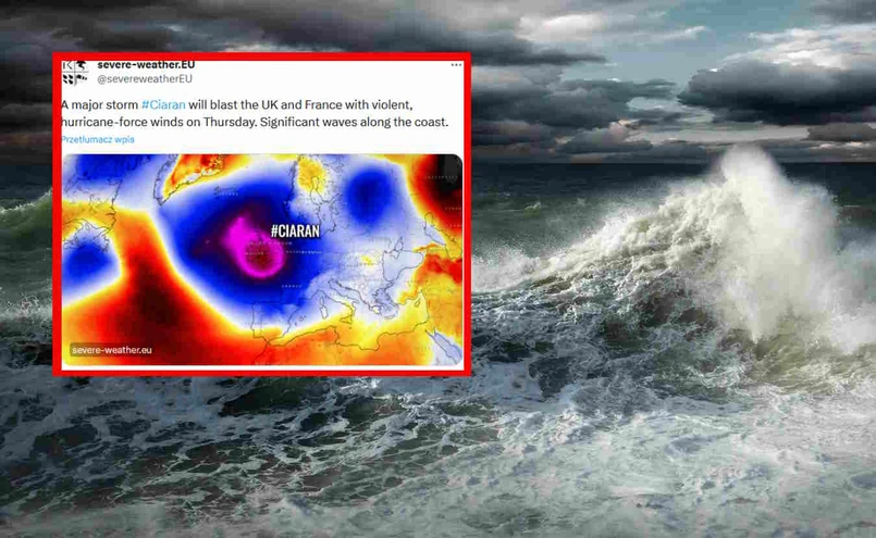 "W czwartek wielki orkan Ciaran uderzy w Wielką Brytanię i Francję gwałtownymi wiatrami o sile huraganu. Duże fale wzdłuż wybrzeża" – informuje Severe Weather.