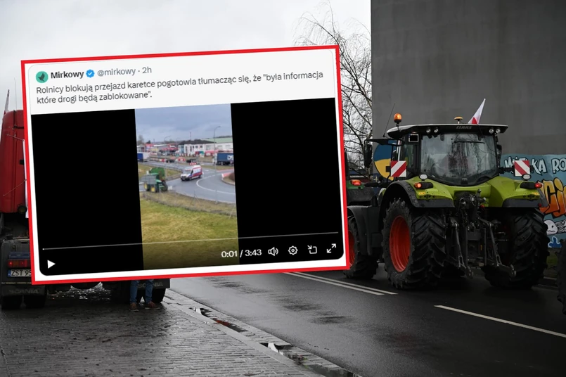 W sieci szeroko komentowane jest nagranie z protestu rolników. Na początku wideo można zauważyć, że karetka próbuje zjechać z ronda w jedną z dróg, ale jest to niemożliwe, bo ta zastawiona jest traktorem.