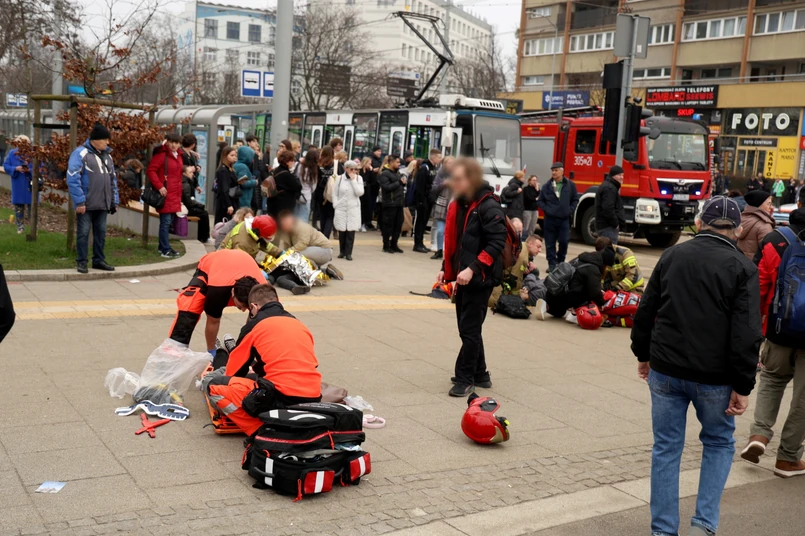 W wyniku zdarzenia na pl. Rodła poszkodowanych zostało 20 osób, w tym sześcioro dzieci. Dwie osoby są w stanie ciężkim, ale niezagrażającym życiu. W wyniku kolizji, która miała miejsce chwilę później, ranne zostały cztery osoby. Jak przekazano, nie odniosły one poważnych obrażeń.