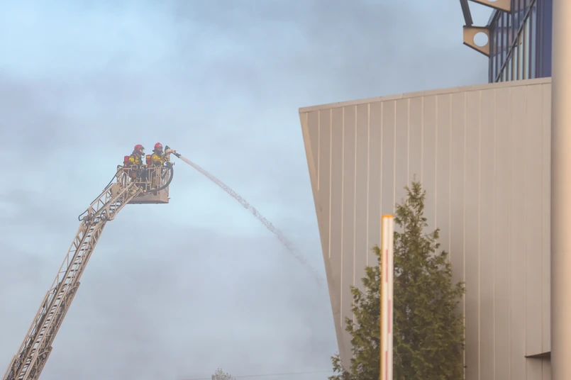 Jak ustalono, płonie hala magazynowa firmy Farmacol związanej z przemysłem farmaceutycznym.