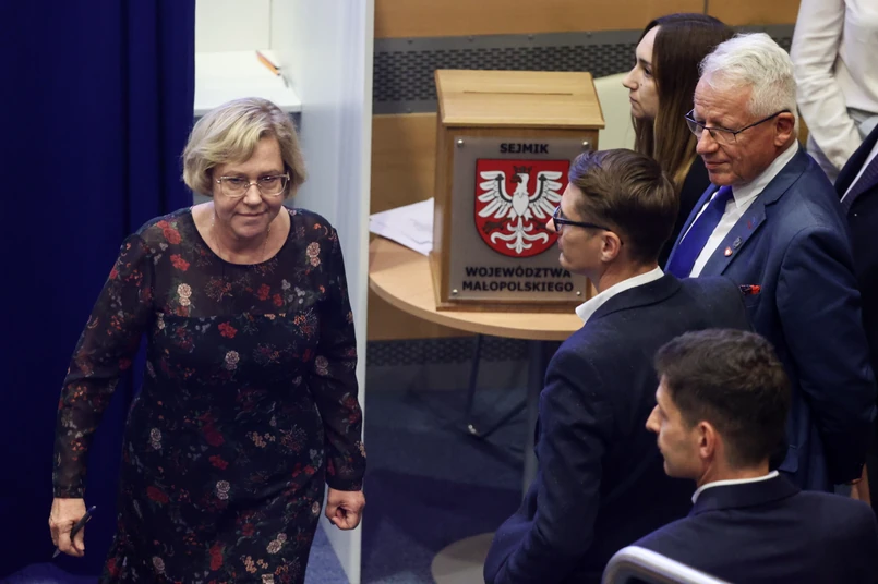 Na Łukasza Kmitę, kandydata rekomendowanego przez Jarosława Kaczyńskiego i Ryszarda Terleckiego nie chcą głosować radni skupieni wokół obecnego marszałka Witolda Kozłowskiego, popieranego przez Beatę Szydło i Andrzeja Adamczyka. Krzysztof Klęczar zgłoszony przez KO i Trzecią Drogę uzyskał 19 głosów. Łukasz Kmita zdobył 16 głosów.