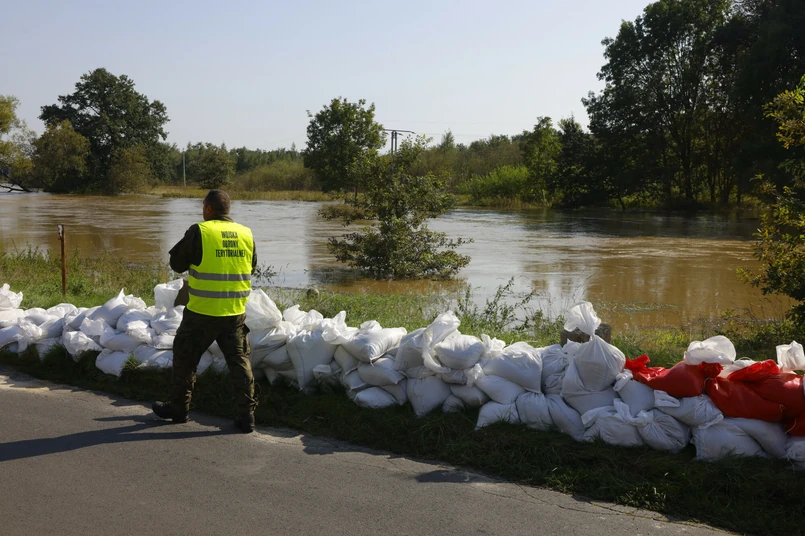 Południowa Polska wciąż walczy z powodzią. Fala dotarła właśnie do Oławy. Przez całą noc mieszkańcy miasta wraz ze służbami umacniali wały workami z piaskiem.