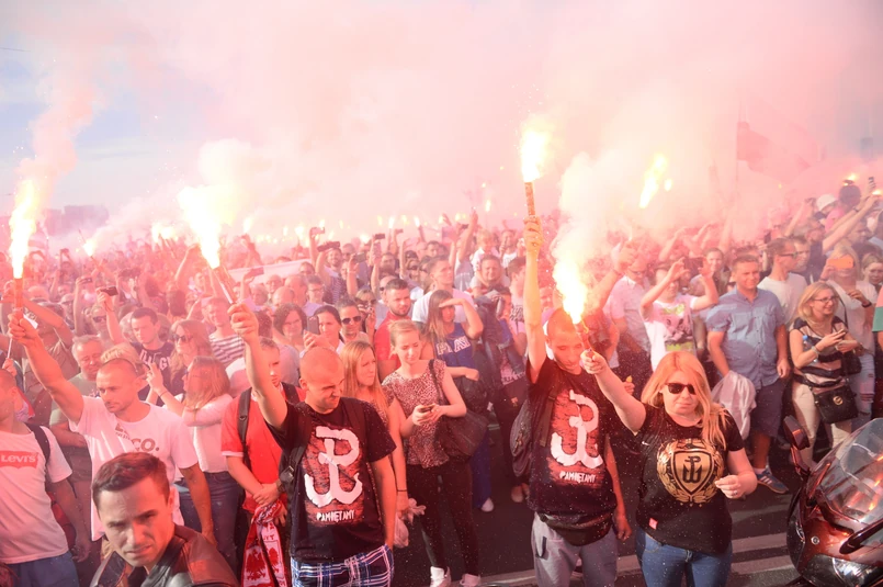 1 Znak Polski Walczącej utworzony przez ludzi na placu Zamkowym