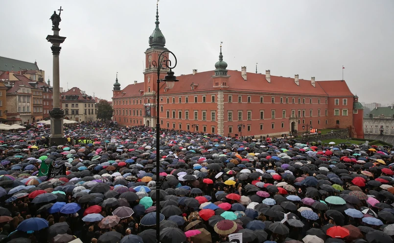 1 W stolicy strajkowi od rana towarzyszyły manifestacje i różnego rodzaju happeningi; po południu na pl. Zamkowym rozpoczęła się manifestacja, w której - według organizatorów - bierze udział ponad 20 tys. osób - zarówno kobiet, jak i mężczyzn. Policja na razie nie podaje, ile osób uczestniczy w proteście.